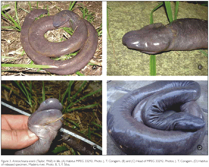 Los biólogos han encontrado cinco ejemplares de un muy raro anfibio, Atretochoana eiselti, en la Amazonia brasileña, informaron medios de comunicación nacionales el martes (31). Las muestras, una especie con un cuerpo cilíndrico alargado y la piel lisa, pertenecientes a la familia de los llamados cecilias, fueron encontrados cerca del sitio de la construcción de una central hidroeléctrica en el río Madeira, en Porto Velho, capital del estado de Rondônia, en el norte de Brasil.